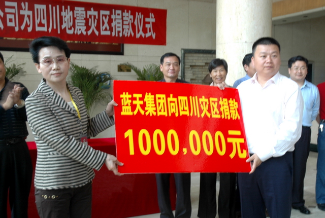 藍(lán)天集團為汶川地震災(zāi)區(qū)捐款100萬元