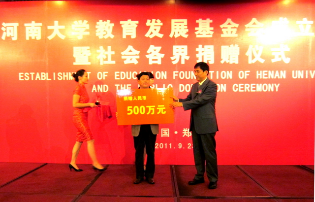 藍(lán)天集團為河南大學(xué)教育基金會捐資500萬元