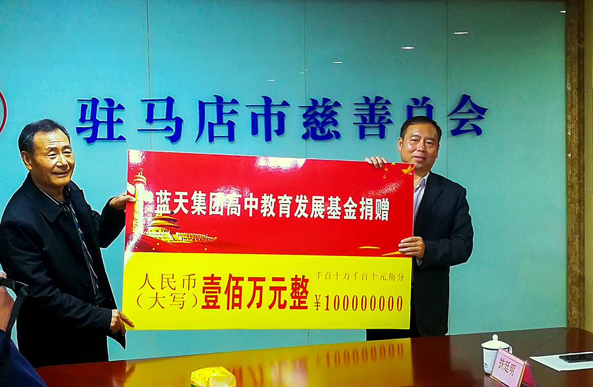 藍(lán)天集團向高中教育發(fā)展基金捐贈100萬元
